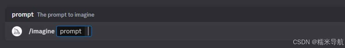 回到我们的服务器,然后在下面的输入框输入“/”,它会弹出一系列的命令(如果没弹窗,退出重新登录即可),我们先点击“/imagine”(这个参数我后面再做详细解释),然后会出现如下画面: