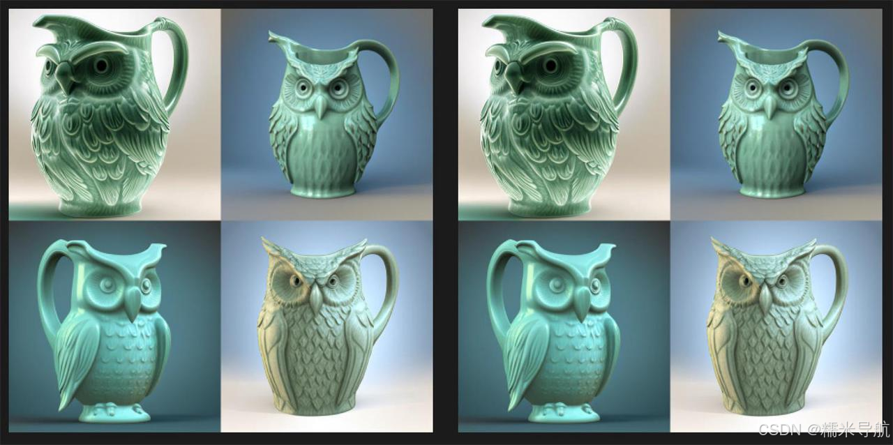 当宽高比为 1:1 时,测试模型仅生成两个初始网格图像。