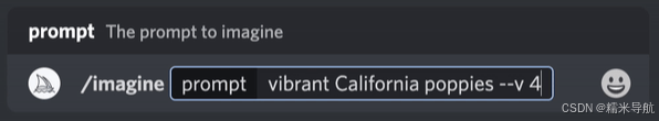 提示示例:/imagine prompt vibrant California poppies --v 1