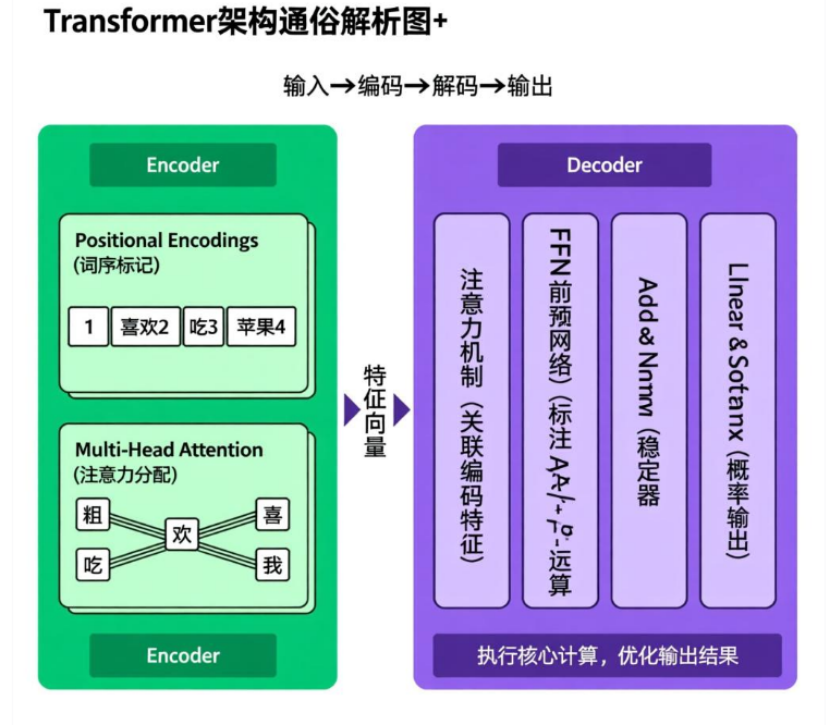 注意力机制就像“会动的 A”:它能根据输入的内容,自动判断 “该重点看哪个词”。比如猜 “吃” 的下一个词时,会给 “喜欢” 更高的 “注意力权重”,给 “我” 更低的权重。