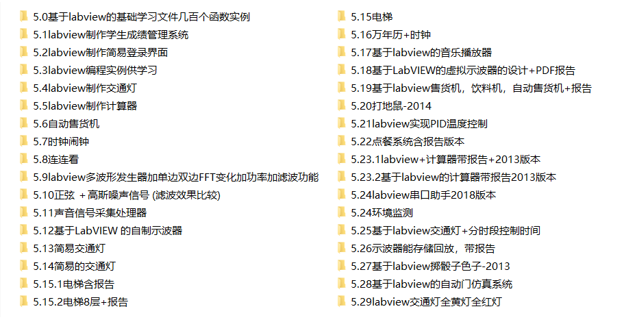 5.10基于labview正弦 +高斯噪声信号(滤波效果比较)5.18基于LabVIEW的虚拟示波器的设计+PDF报告。5.19基于labview售货机饮料机,自动售货机+报告。5.23.1labview+计算器带报告+ 2013版本。5.23.2基于labview的计算器带报告2013版本。5.26基于labview示波器能存储回放,带报告。5.15.2基于labview电梯8层 +报告。5.1
