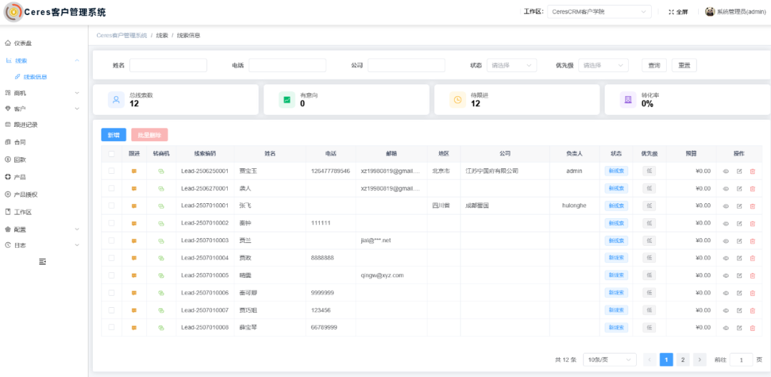 基于Java 17,Spring Boot 3.x,WebFlux,Netty,Vert.x,Reactor等开发, 是一个开箱即用,可二次开发的CeresCRM客户管理系统,轻量级CRM客户关系管理产品,涵盖了通过整合客户数据、销售流程、市场营销活动,帮助企业更好地了解客户需求、优化客户体验并提升客户忠诚度等;仪表盘统计让企业管理者对客户和销售状况一览无余。(二)软件开发环境及开发工具