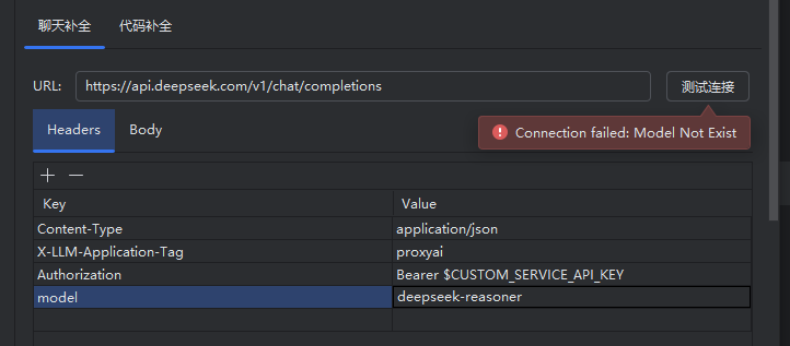 Body中,model为deepseek-chat(非深度思考),deepseek-reasoner(深度思考)