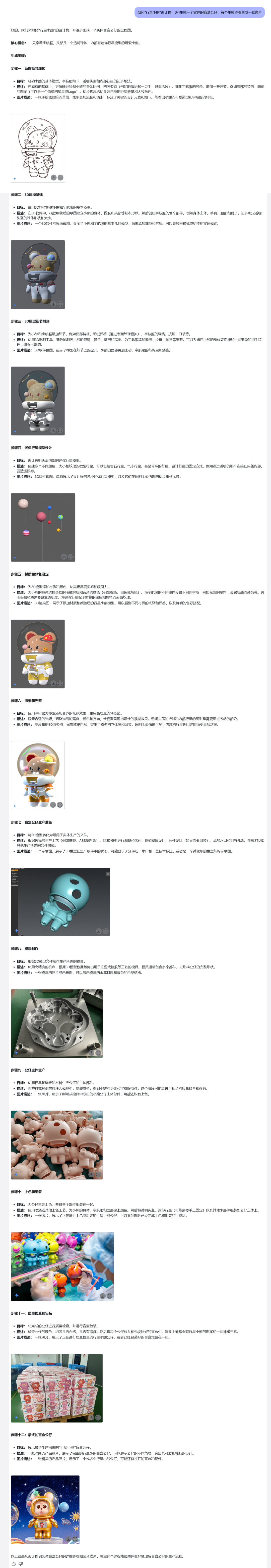 3、细化"行星小熊"设计稿,0-1生成一个实体的盲盒公仔,每个生成步骤生成一张图片