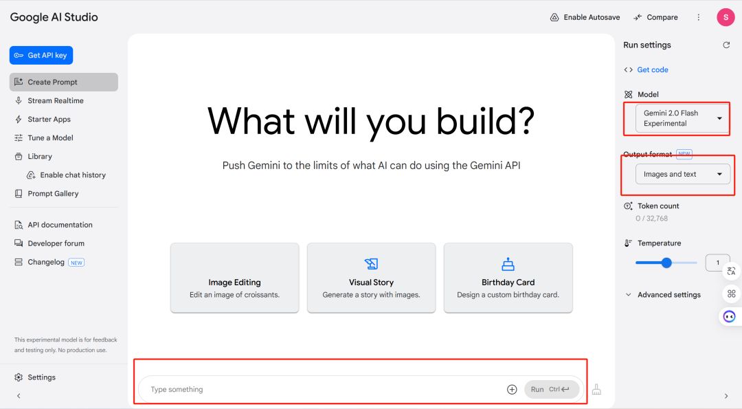1、访问 Google AI Studio(需科学上网),选择 “Gemini 2.0 Flash Experimental” 模型。地址:aistudio.google.com