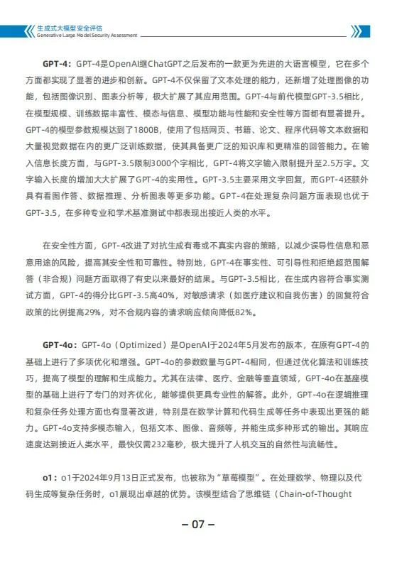 OpenAI GPT系列:从GPT-1到GPT-4,参数规模和性能不断提升,GPT-4新增图像处理能力,安全性与可靠性显著增强。