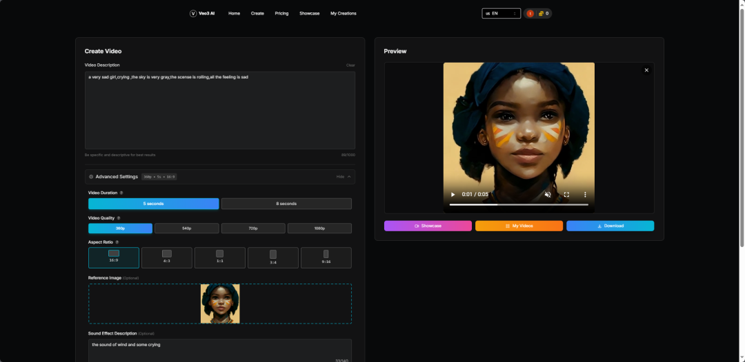 由于免费积分有限,我们只能生成5秒的360p的视频,但是也足够了