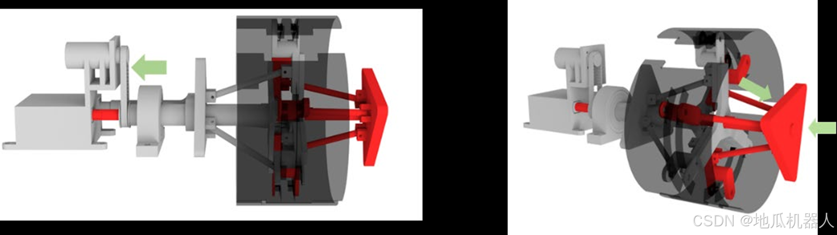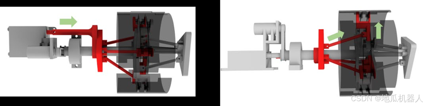 具体来说,每个移动单元由三篇分离式轮毂组成,为了应对不同高度和宽度 的楼梯,我们采用四杆机构,通过四杆机构的的运动调整轮毂伸缩的距离及角度。