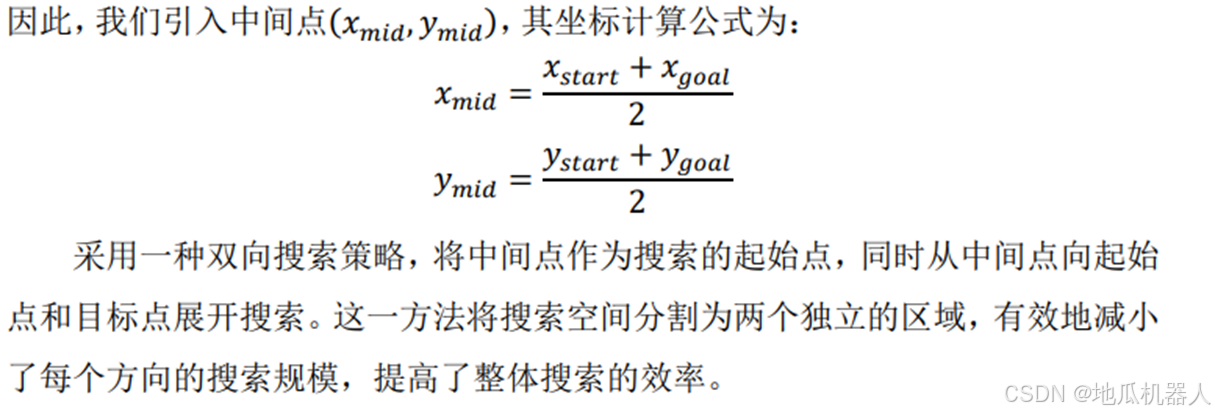 2、引入双向搜索策略。在大规模搜索空间下,传统的 A*算法采用的单向搜索策略存在搜索效率低 搜索节点数量多等问题。