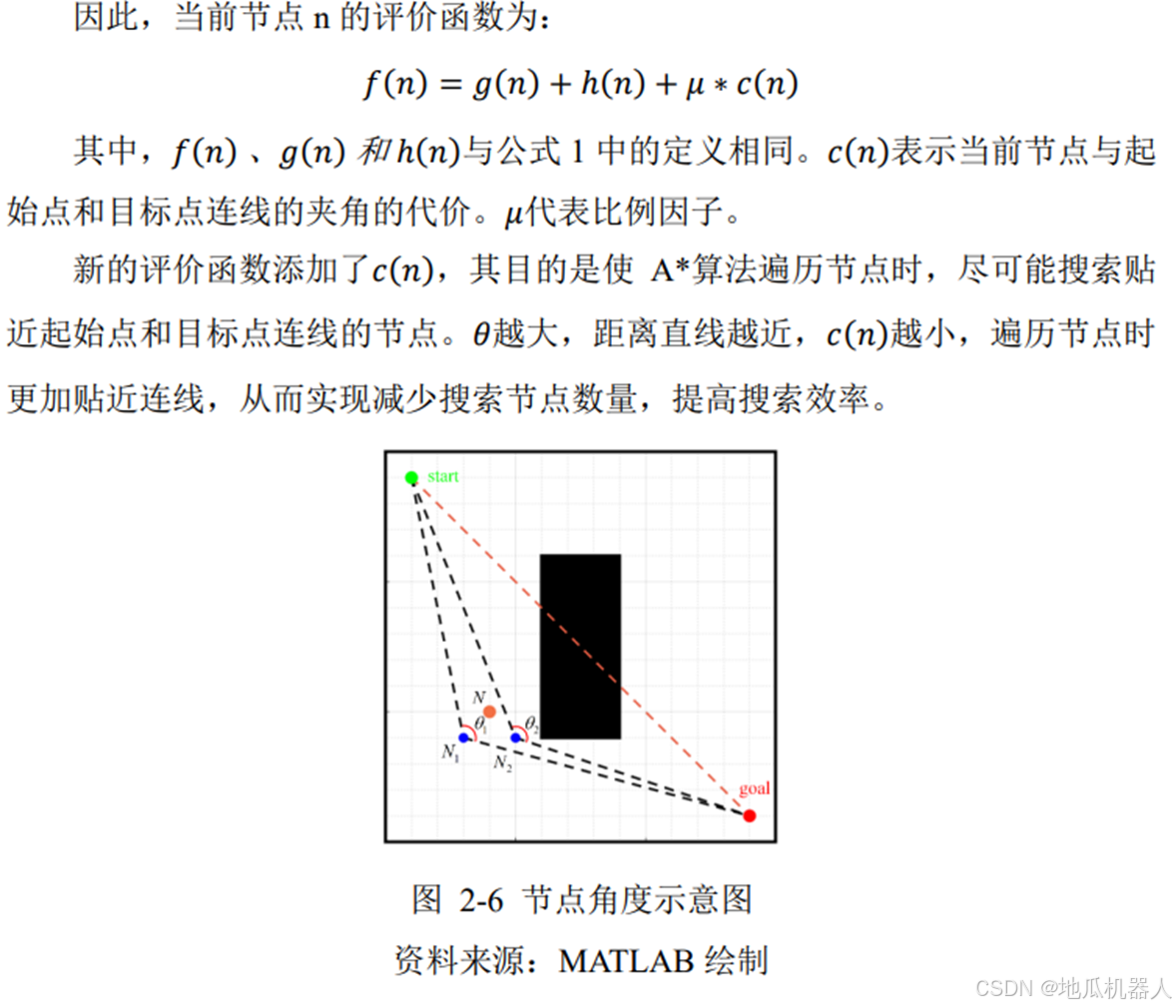 1、传统的 A-star 算法只考虑了距离问题,没有考虑环境地图上的许多实际因 素。因此 我们在传统 A*算法评价函数的基础上,通过引入节点到起始点和目标 点连线的夹角,对评价函数进行改进。