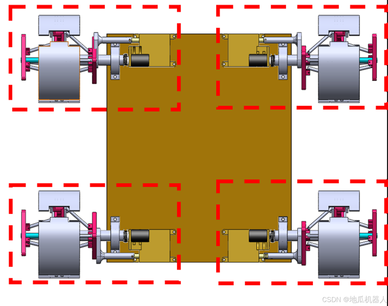 为了提高配送效率并避免占用电梯空间,机器人需要能够上下楼梯和行走。我们设计了可扩式四轮结构,结合电动推杆和电机的运动,使机器人能够轻松应对楼梯。