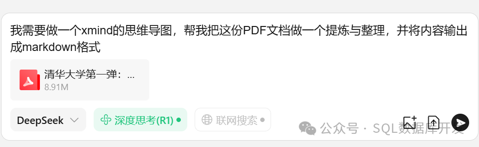 最近清华大学的几本电子书非常火爆,我们把这本《DeepSeek从入门到精通》的电子书(需要的可以后台回复:清华)上传一下,然后给DeepSeek发送一个指令