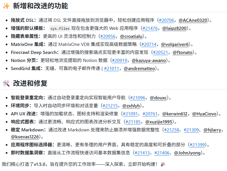 完整更新 见dify v1.5.0 日志 和 官方更新发布,升级指南见文末