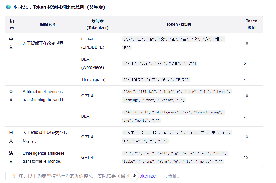 当你深入使用时,会发现不同模型有不同的Token化策略: