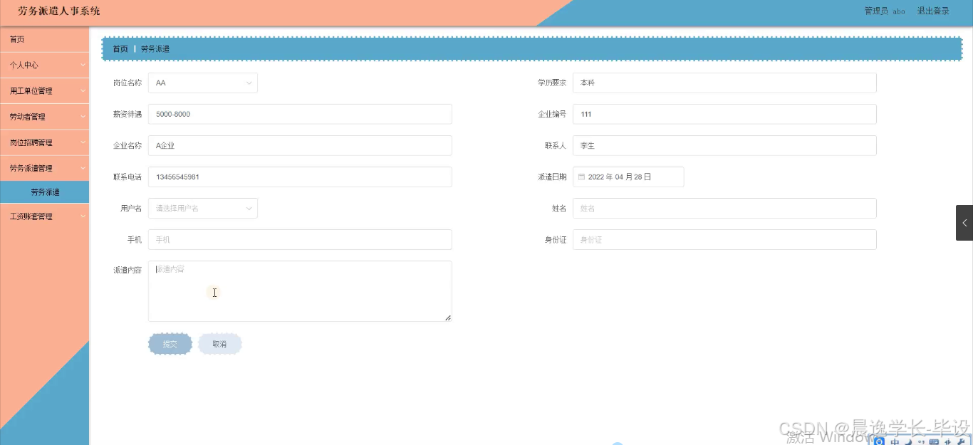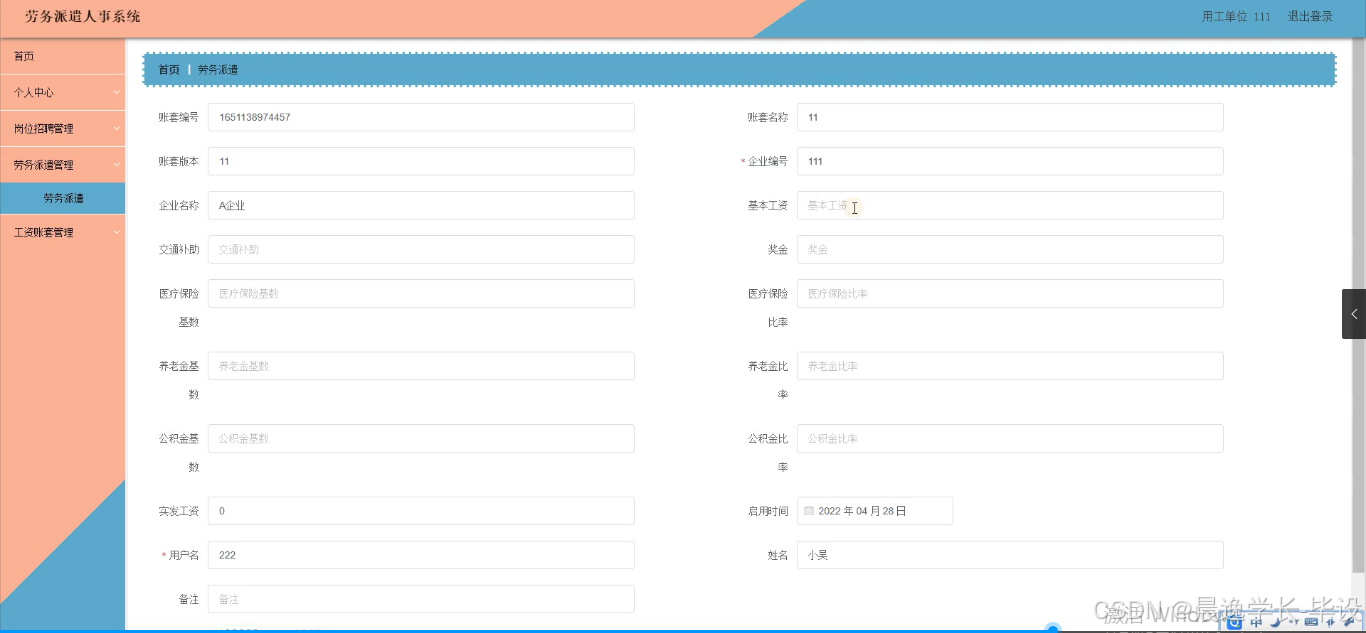 传统的劳务派遣管理方式往往存在信息孤岛、流程繁琐、数据不准确等问题,严重影响了劳务派遣的效率和效果。因此,开发一套劳务派遣人事系统,实现劳务派遣业务流程的数字化、自动化管理,对于提升劳务派遣效率、保障劳动者权益、优化用工单位资源配置具有重要意义。通过系统化管理,可以实现对用工单位、劳动者、岗位招聘、劳务派遣、工资账套等关键信息的全面整合与高效处理,提升管理效率,降低管理成本。通过系统建设,实现劳务