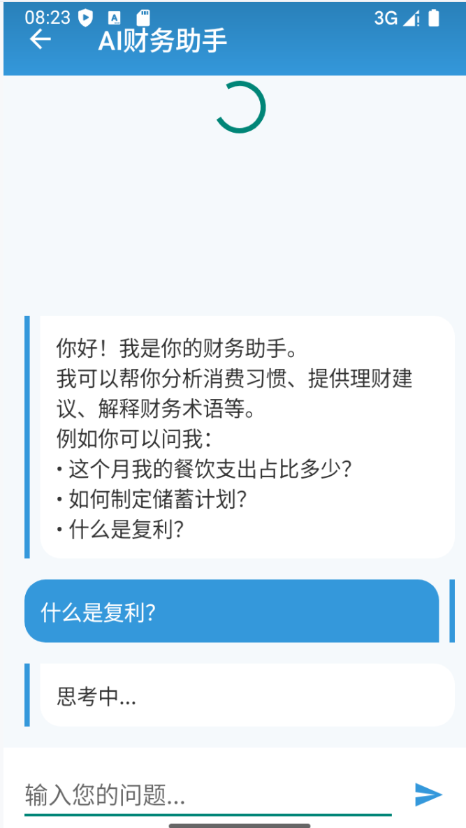 ①实时 AI 对话:用户与财务助手自然交互