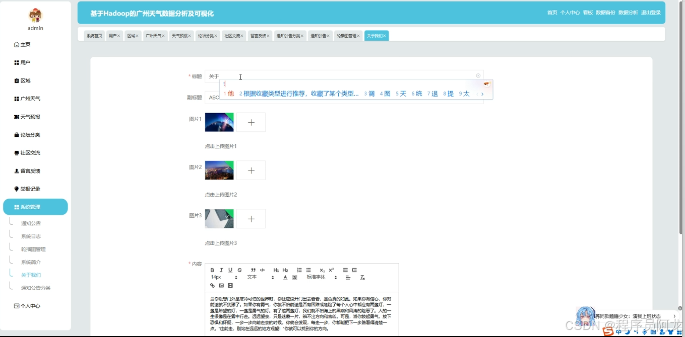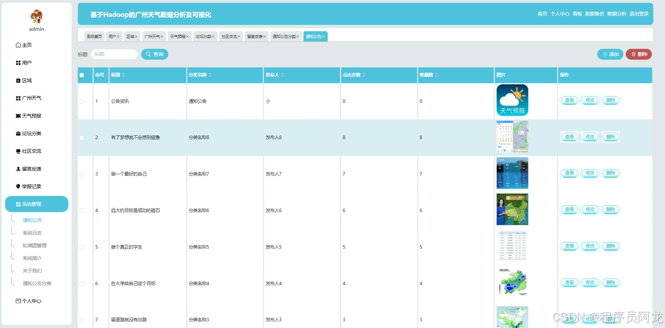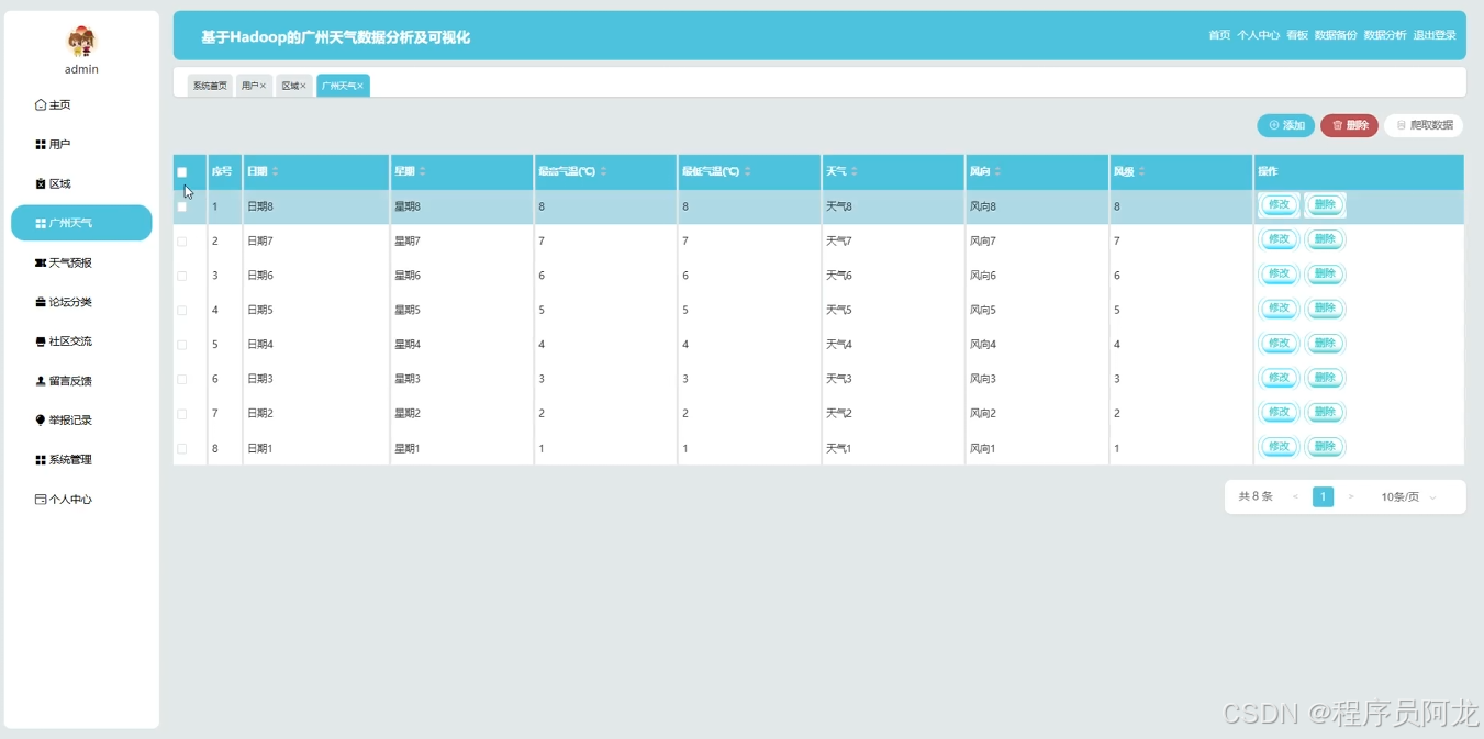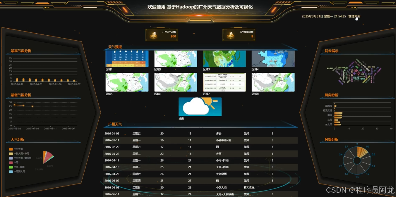 基于Hadoop的广州天气数据分析及可视化(源码+定制+讲解) 广州地区天气大数据的分析与可视化系统设计 广州天气数据智能分析平台 Hadoop+天气爬虫+ECharts气象可视化