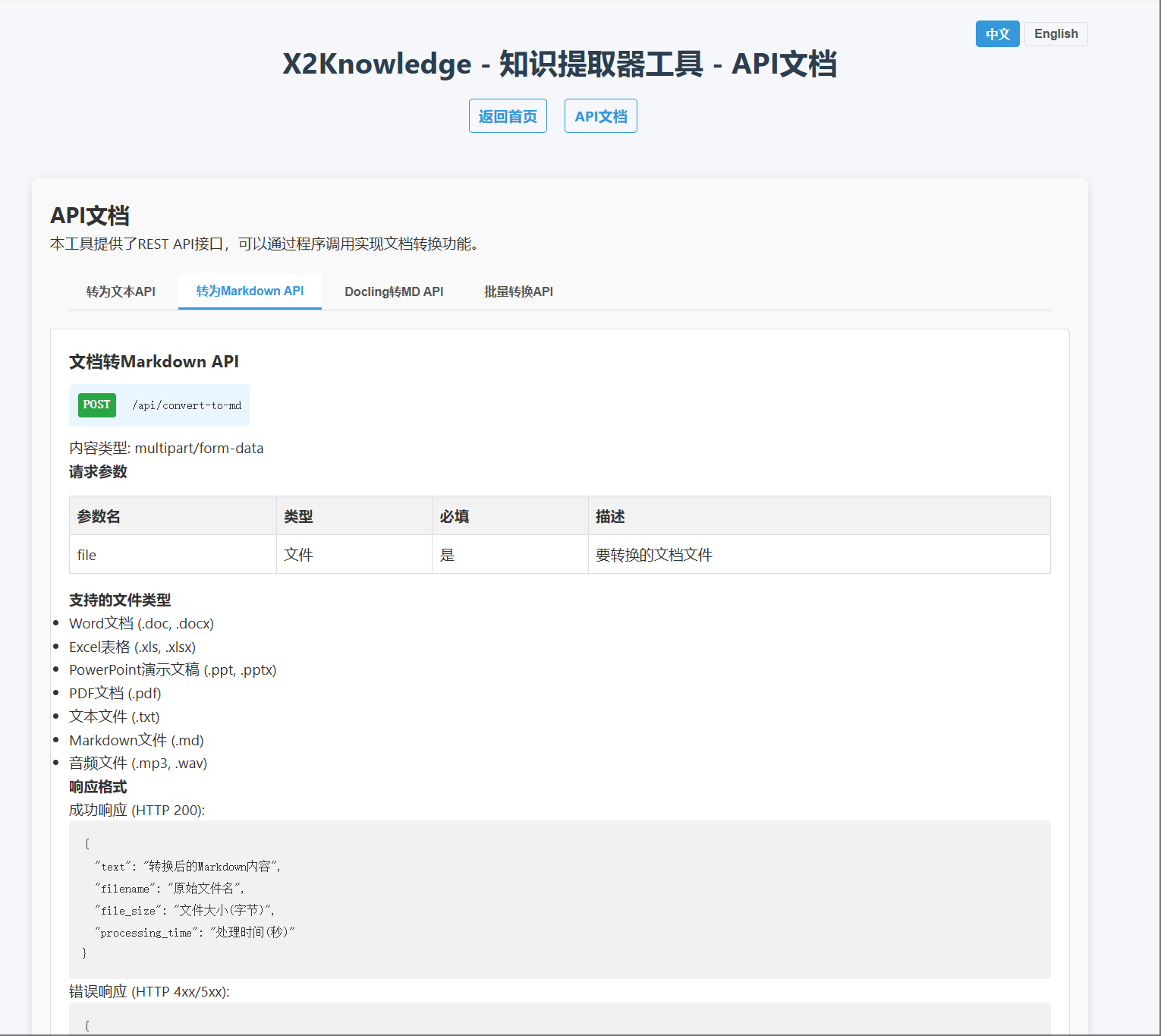| 支持的格式 | DOC, DOCX, XLS, XLSX, PPT, PPTX, PDF, TXT, MD | PDF, DOCX, XLSX, PPTX, 图片, HTML | PDF, DOCX, XLSX, PPTX, 图片, HTML |