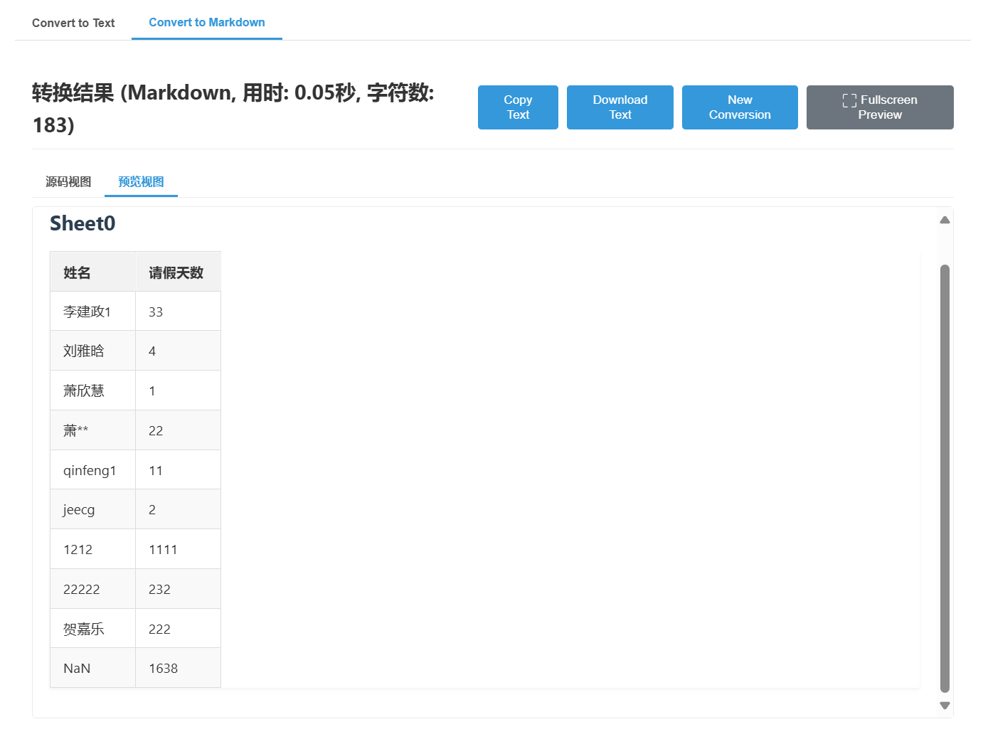 Execel转换效果