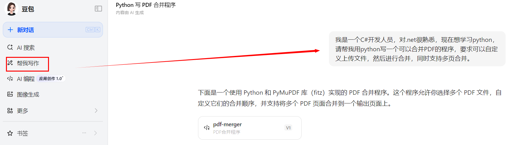 .NET开发转JAVA、Python有压力?AI成为你的智慧大脑,让你精通各种语言。以合并PDF功能为例,让你1小时掌握其他语言