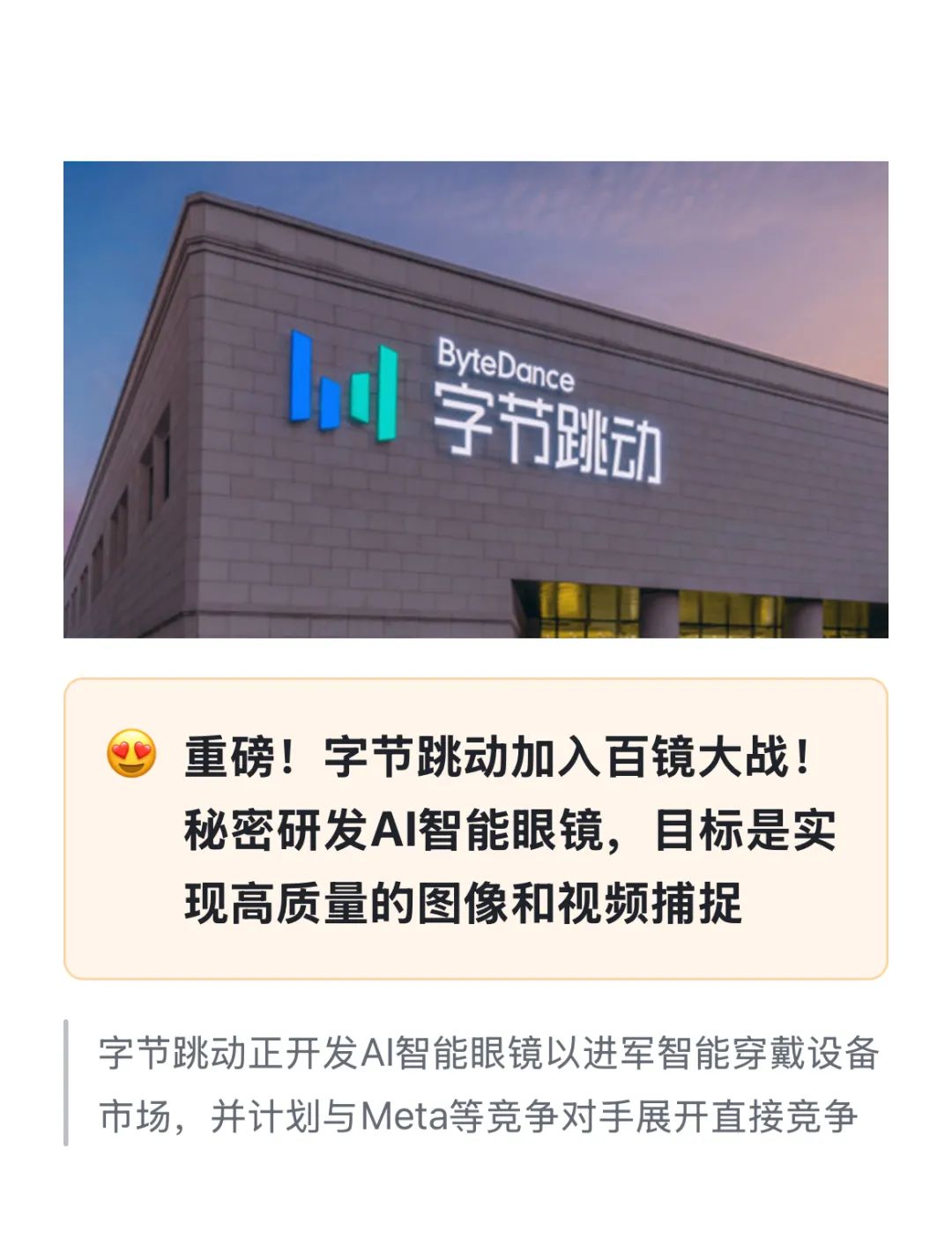 重磅!字节跳动入局“百镜大战”,秘密研发AI智能眼镜