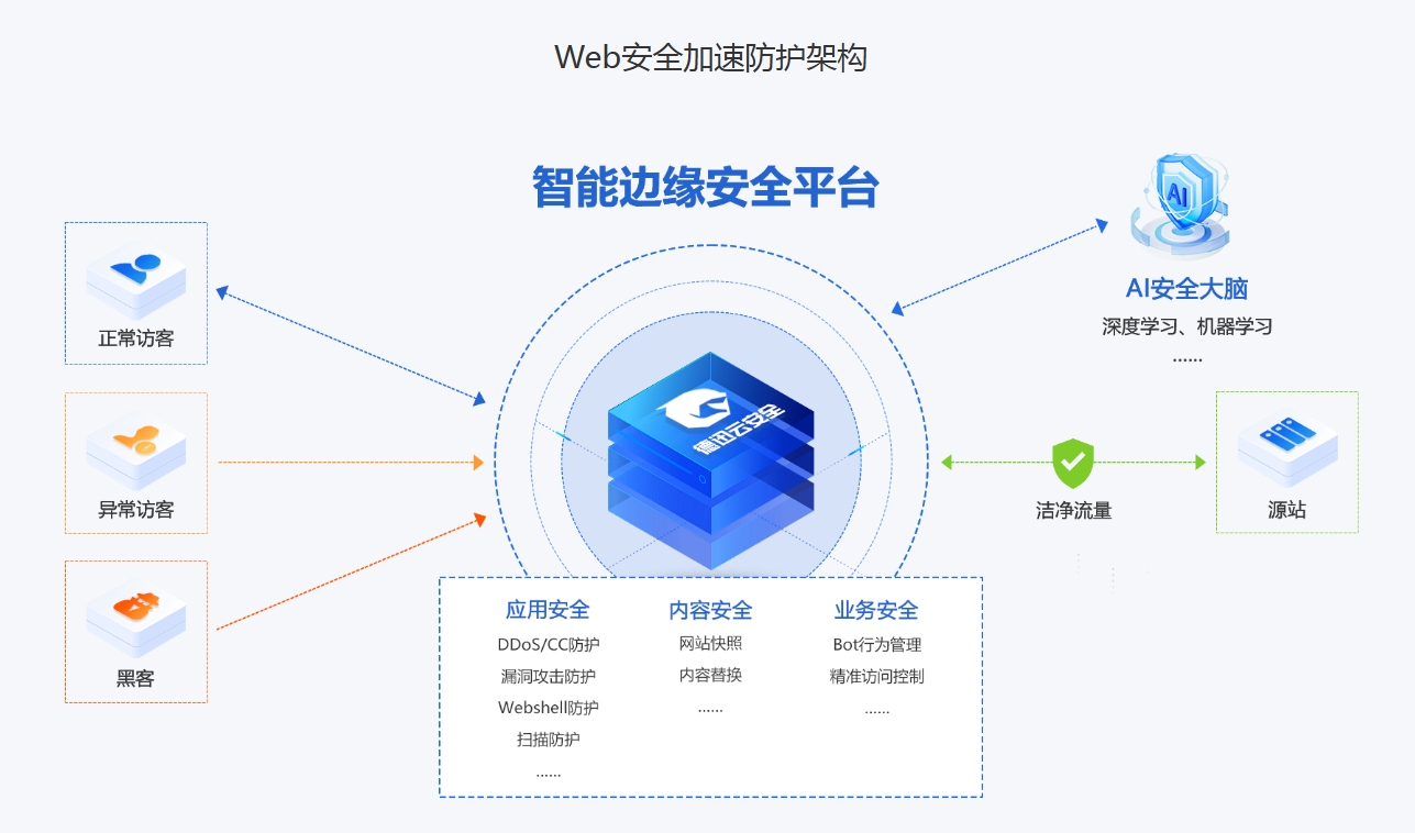 安全加速(Secure Content Delivery Network,SCDN)是德迅云安全推出的集分布式DDoS防护、CC防护、WAF防护、BOT行为分析为一体的安全加速解决方案。已使用内容分发网络(CDN)或全站加速网络(ECDN)的用户,购买服务后可为加速域名一键开启安全防护相关配置,全方位保障业务内容分发。