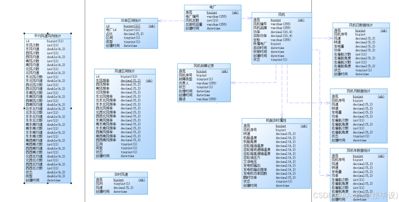 一、项目概述二、系统设计2.1 设计目标2.2 系统设计原则三、数据设计四、菜单设计5.1.主页5.2.全场监控5.3.数据统计5.4.报表管理5.5.报警管理六、 数据库设计6.1 物理视图6.2 E-R图七、系统功能7.1 完整实时数据展现 7.2 数据统计与查询7.3 强大的风势折线与风频玫瑰图7.4 功率展示八、项目结构九、界面设计十、性能测试十一、说明