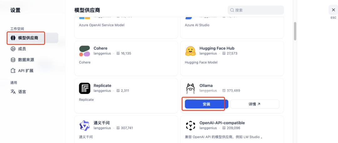 在供应商里找到“Ollama”。