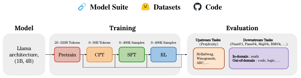 哈佛与斯坦福大学的研究者通过从零训练 1B/4B 模型,系统性地分析了模型在不同训练阶段的性能演变。研究发现,模型的下游任务表现高度依赖于完整的学习率衰减(Learning Rate Decay),因此完整训练的小模型性能优于大模型的中间 Checkpoint。