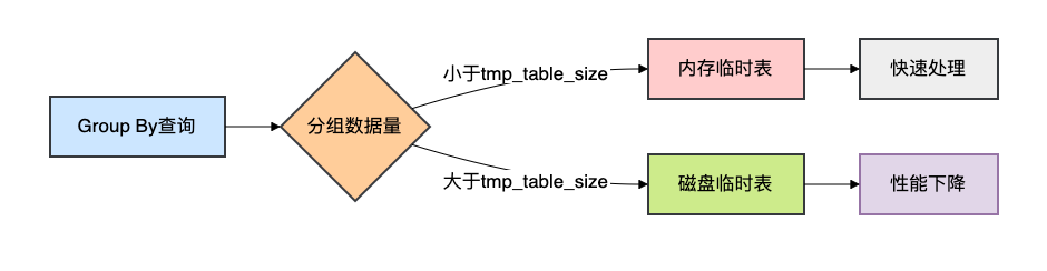 问题分析: 当Group By的数据量较大时,MySQL可能需要使用临时表来存储中间结果,如果临时表太大而内存放不下,就会使用磁盘临时表,性能急剧下降。
