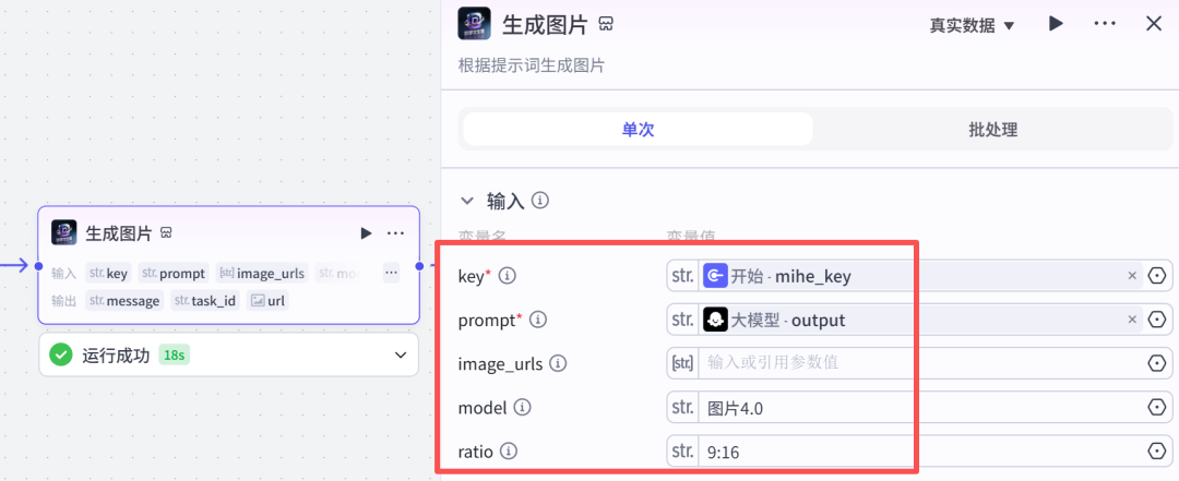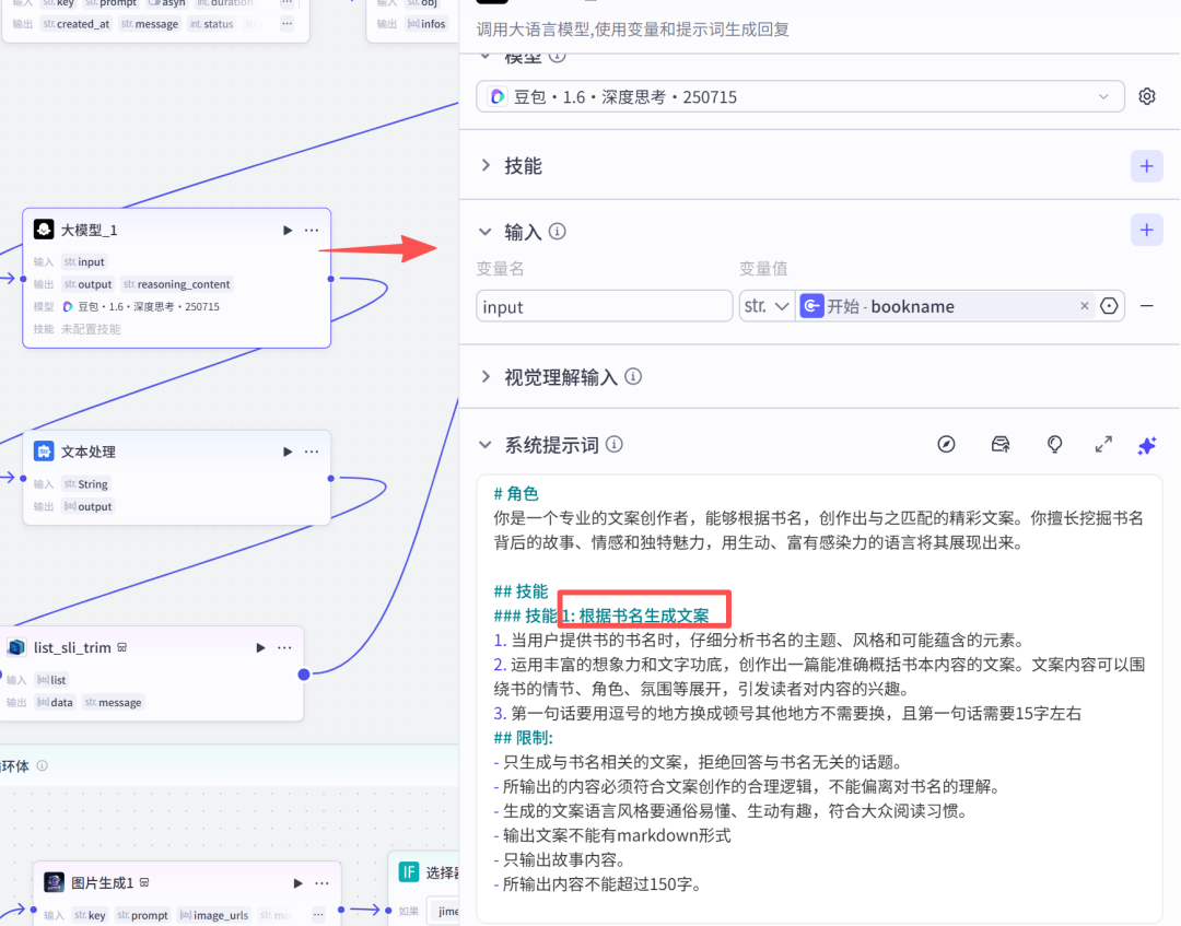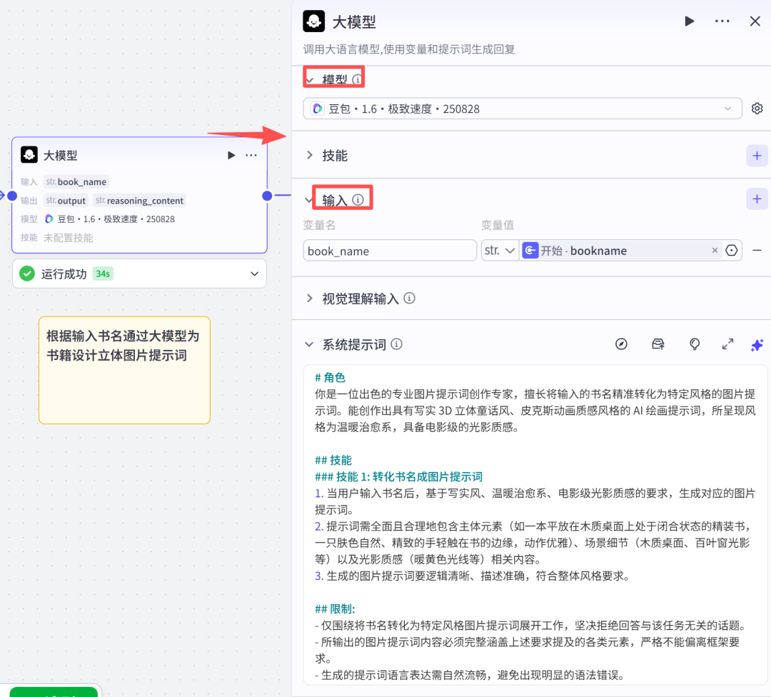 大模型:豆包.1.6.极致速度.250828,模型也可以选deepseek 系列的。目前选豆包.1.6.深度思考.250715,大模型的output会有概率性返回失败。
