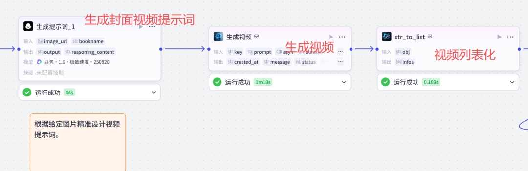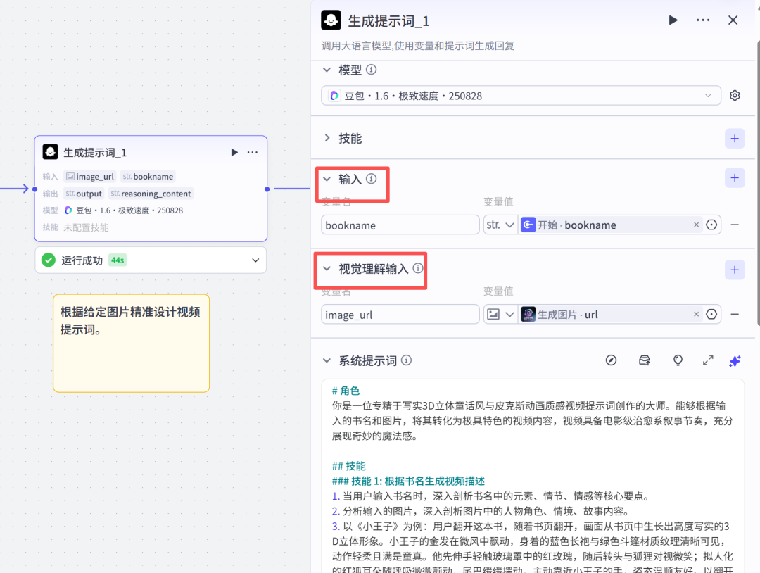 大模型节点根据书名和封面图片生成封面视频提示词。