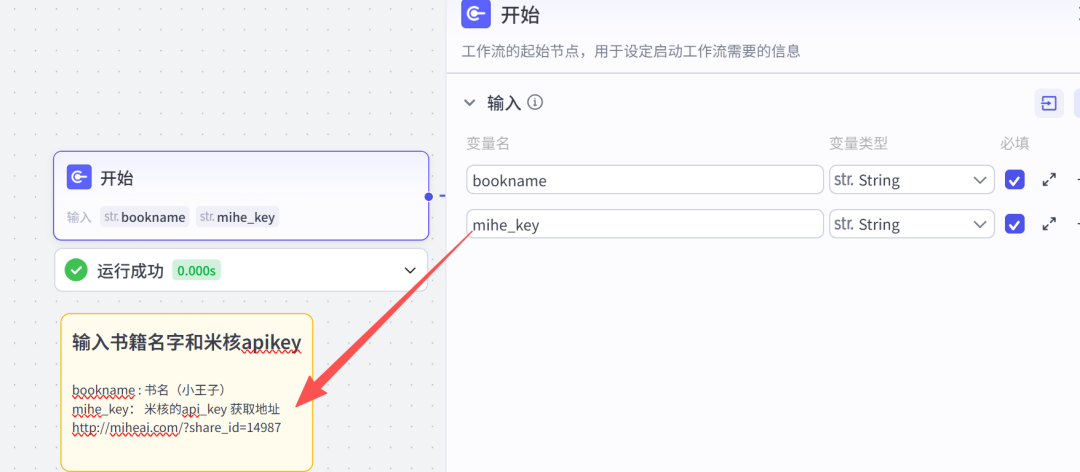 mihe_key: 米核的api_key;在工作流生成图片和生成视频插件中需要用到它。
