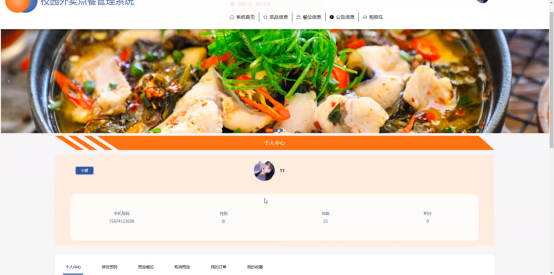 个人中心:用户可以在个人中心查看个人信息、修改密码、管理订单、收藏菜品等。此外,用户还可以对菜品或餐位进行评论,分享使用体验。