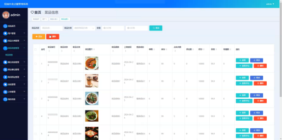 图5-10菜品信息管理界面