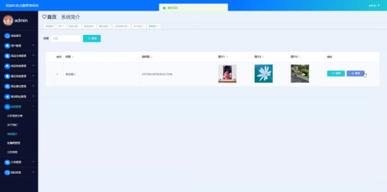 管理员点击系统管理。进入系统管理的系统简介页面输入标题可以查询系统简介信息,并进行查看、修改等操作。如图5-13所示: