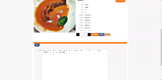 菜品信息:在菜品信息页面的输入栏中输入菜品名称、价格进行搜索,可以查看到菜品详细信息,并进行添加到购物车、立即购买、积分兑换、评论或收藏操作;菜品信息页面如图5-3所示: