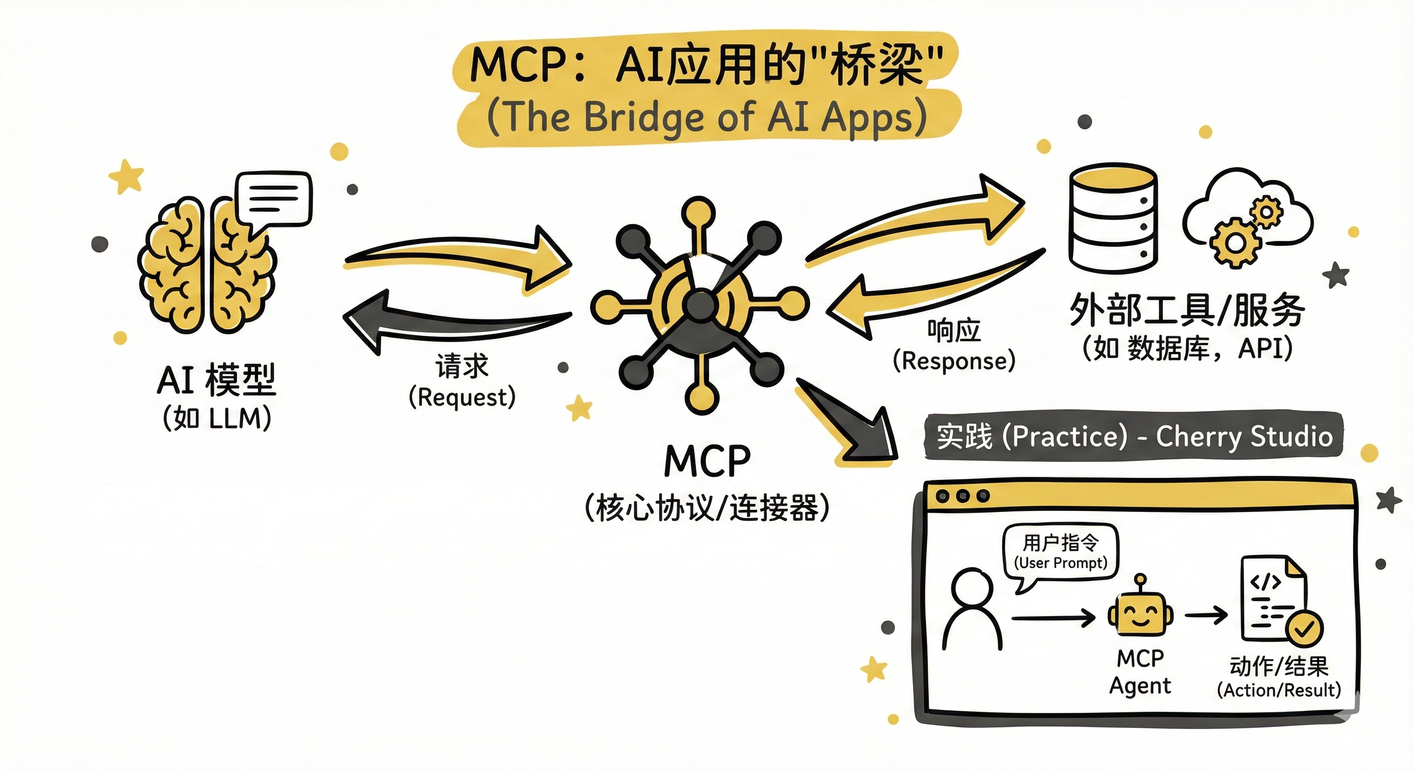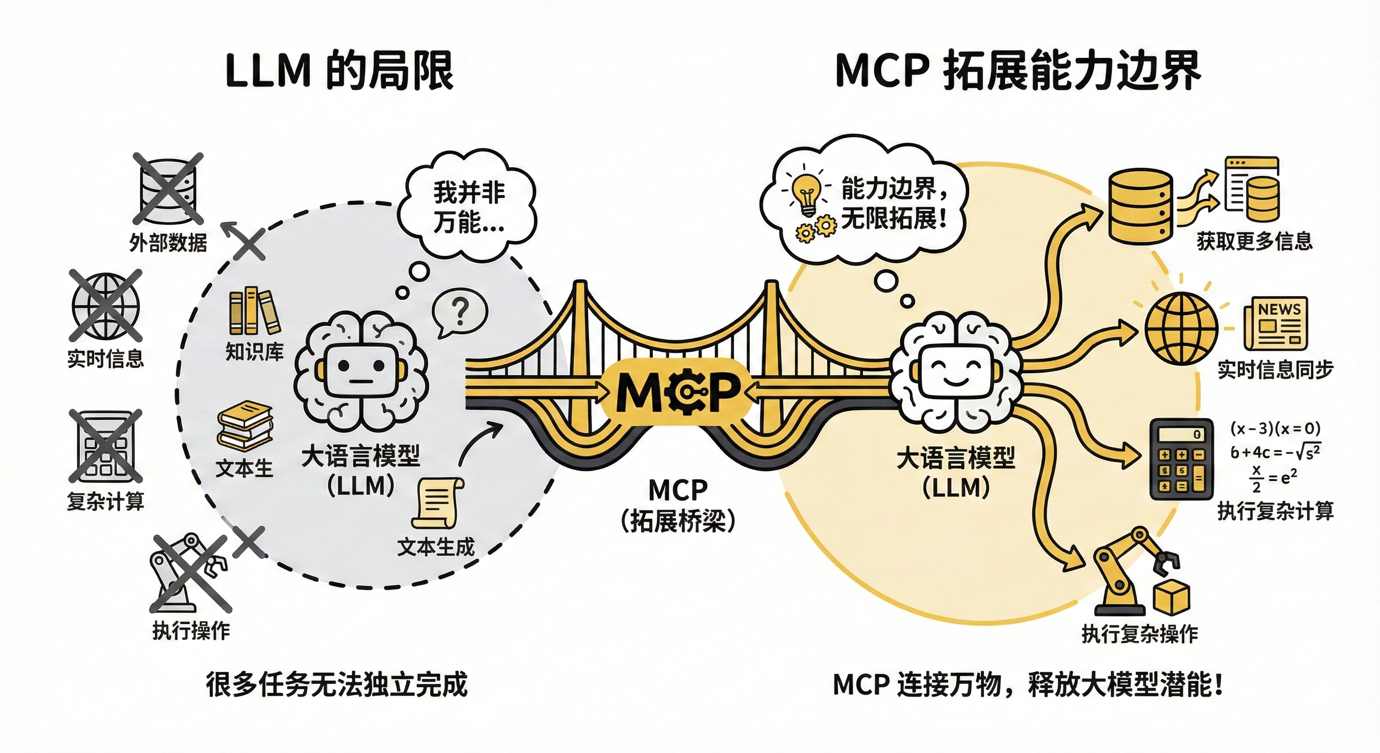 - 标准化接口: MCP 提供统一框架,让 AI 模型与外部工具无缝交互