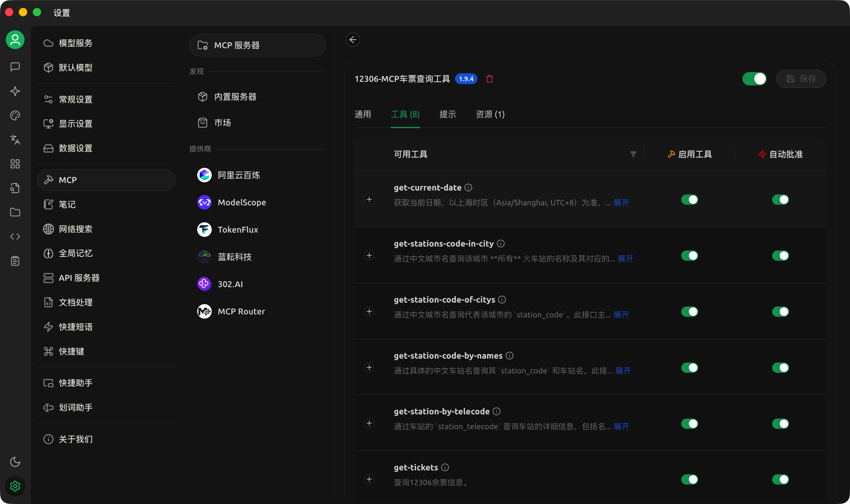 12306 车票查询:https://www.modelscope.cn/mcp/servers/@Joooook/12306-mcp