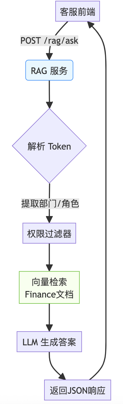 @app.post("/rag/ask")async def ask_rag(request: AskRequest, user_token: str = Header(...)): # 解析 token 获取用户角色/部门 # 执行带权限过滤的检索 # 返回结构化答案