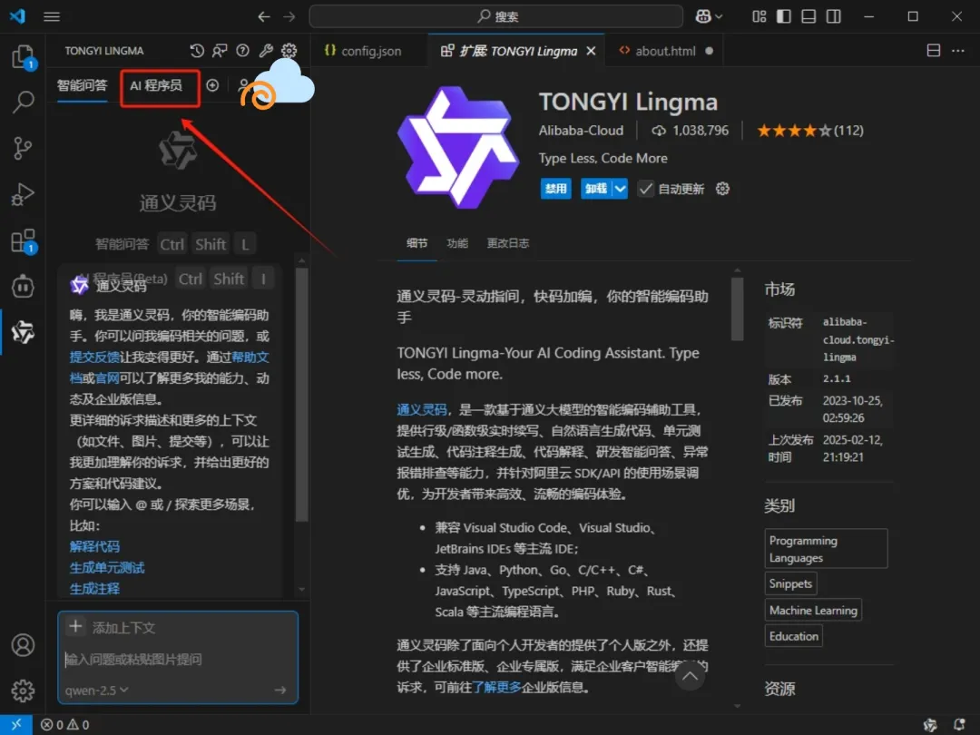 输入”通义灵码“,点击安装。