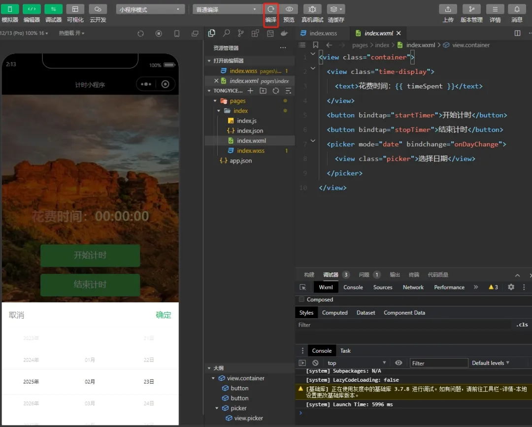 代码修改完成之后,我们只需要在微信开发者工具里重新编译一次就可以了。