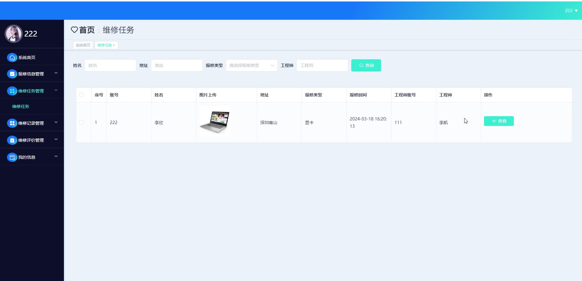 基于SpringBoot的电脑维修工单管理系统