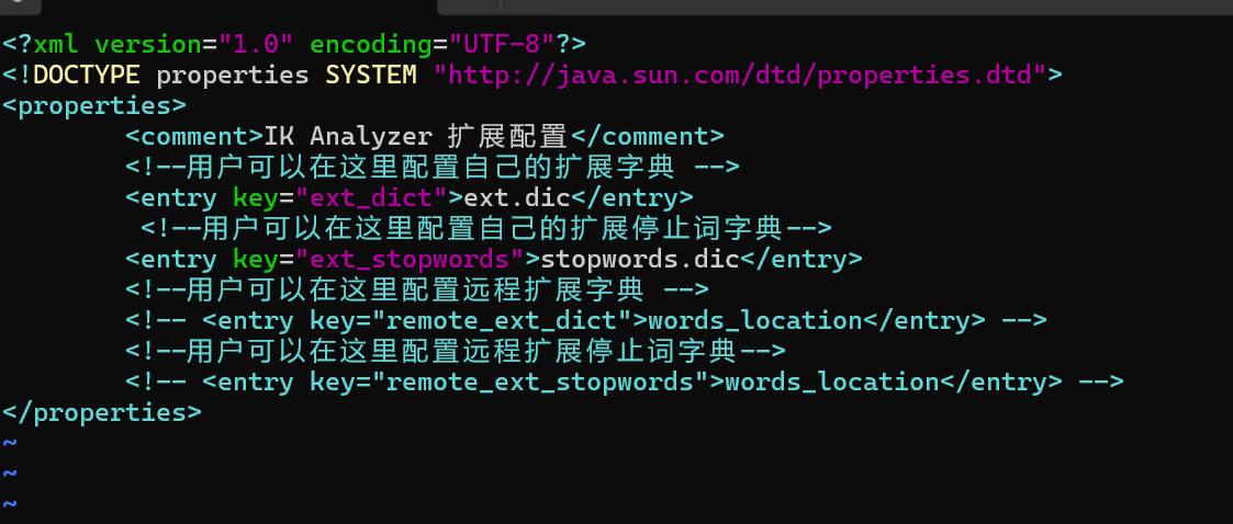 其实 IK 分词器到这里还有一点点的小问题,就是目前的 IK 分词器无法正确的划分网络名词,所以这个时候就需要我们手动去设置,在 IK 分词器目录中的config目录中的IkAnalyzer.cfg.xml中