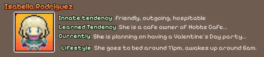 每个生成式智能体被赋予的档案使其表现出独特的方式,并有助于创造更有趣和动态的行为。