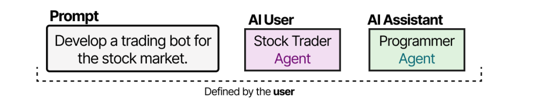 以 CAMEL 为例,用户首先创建问题并定义 AI 用户和 AI 助手角色。AI 用户角色代表人类用户,并将引导整个过程。