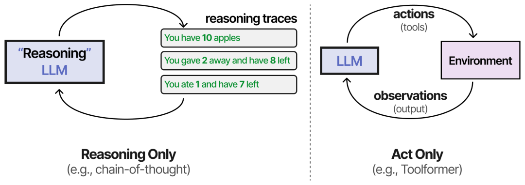 最早将这两个过程结合起来的方法之一被称为 ReAct(推理和行动)。