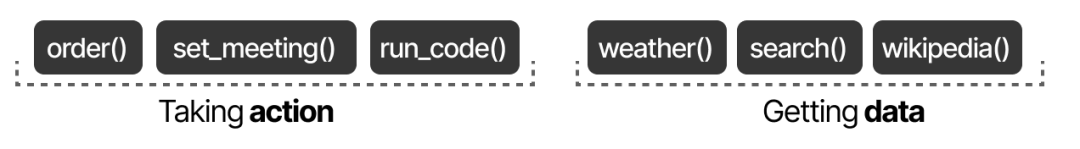 工具通常有两种类型:获取数据以检索最新信息,以及采取行动,如安排会议或订购食物。