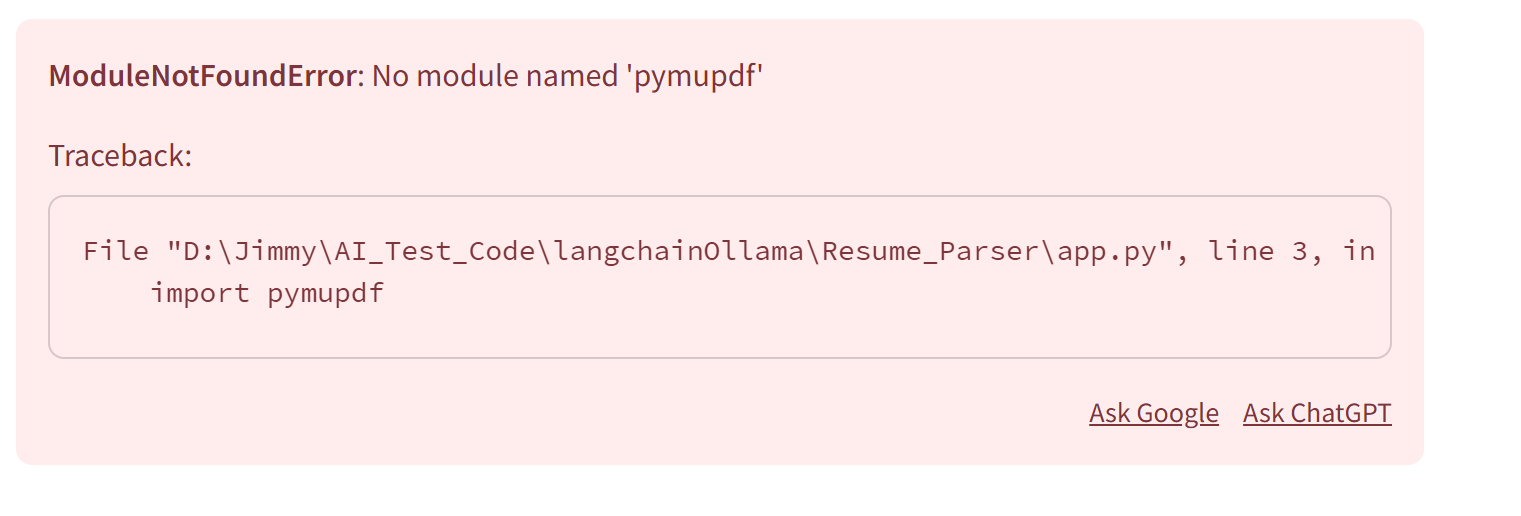 运行Stream 程序总是报 ModuleNotFoundError: No module named ‘pymupdf‘