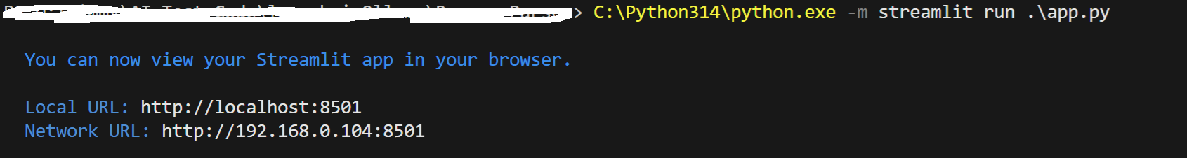 通过python执行:python -m streamlit run .\app.py ,可以看到提示当前使用的python找不到streamlit。